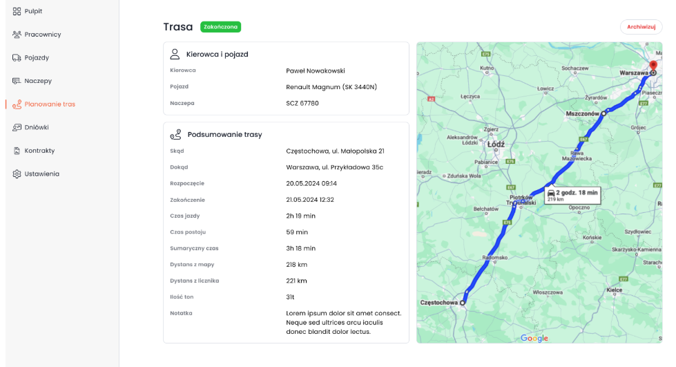 - Cyfryzacja procesu rozliczeń tras i dniówek – zastąpienie papierowych kart drogowych i arkuszy Excel jednym, spójnym systemem dostępnym z poziomu przeglądarki i aplikacji mobilnej.
